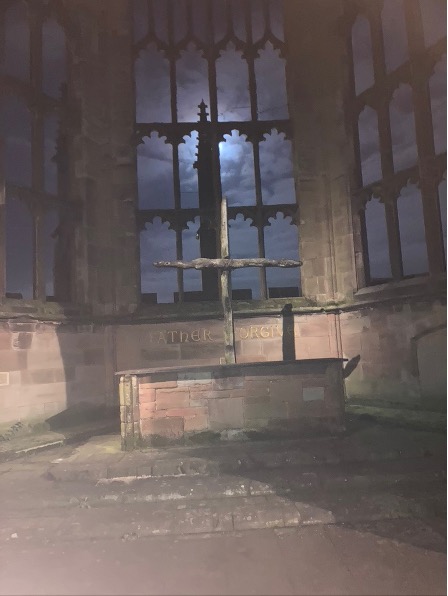 In the cathedral ruins there is an inscription above what remains of the altar. The story is that the day after the Blitz, two half burnt roof-beams were bound and placed at the site of the ruined altar, along with three medieval nails found among the debris. On this makeshift cross Provost Dick Howard, who lead the cathedral at the time, wrote simply ‘Father Forgive’. A small act of remembrance and a commitment to reconciliation that has carried across the ages.